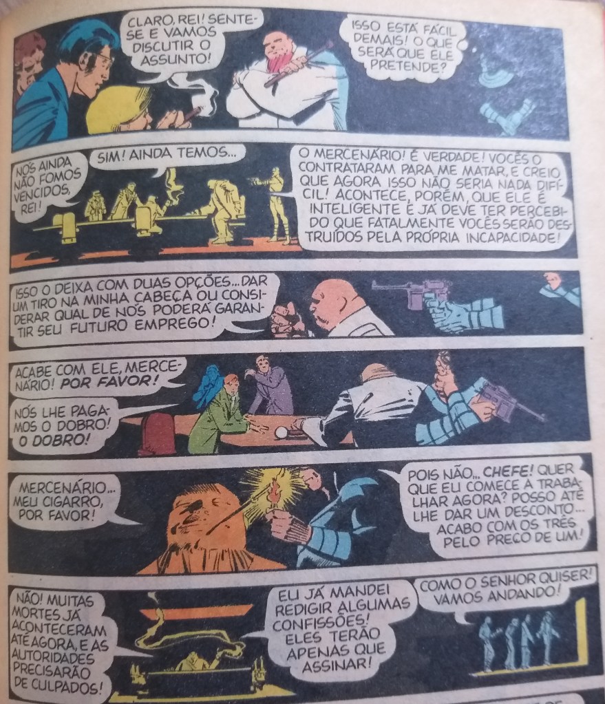Naquele momento, coexistiam vários “chefões” do crime. Cabelo de Prata e Cabeça de Martelo eram habitués das aventuras do Aranha, assim como o próprio Wilson Fisk, chamado em traduções anteriores de “O Careca”; havia também o Morgan, manda-chuva do Harlem, que aparecia então nas histórias do Capitão América & Falcão; e mesmo o Demolidor estava as voltas com um tal “Sr. Slaughter” quando Frank Miller chegou – e vários outros que nem me lembro agora.