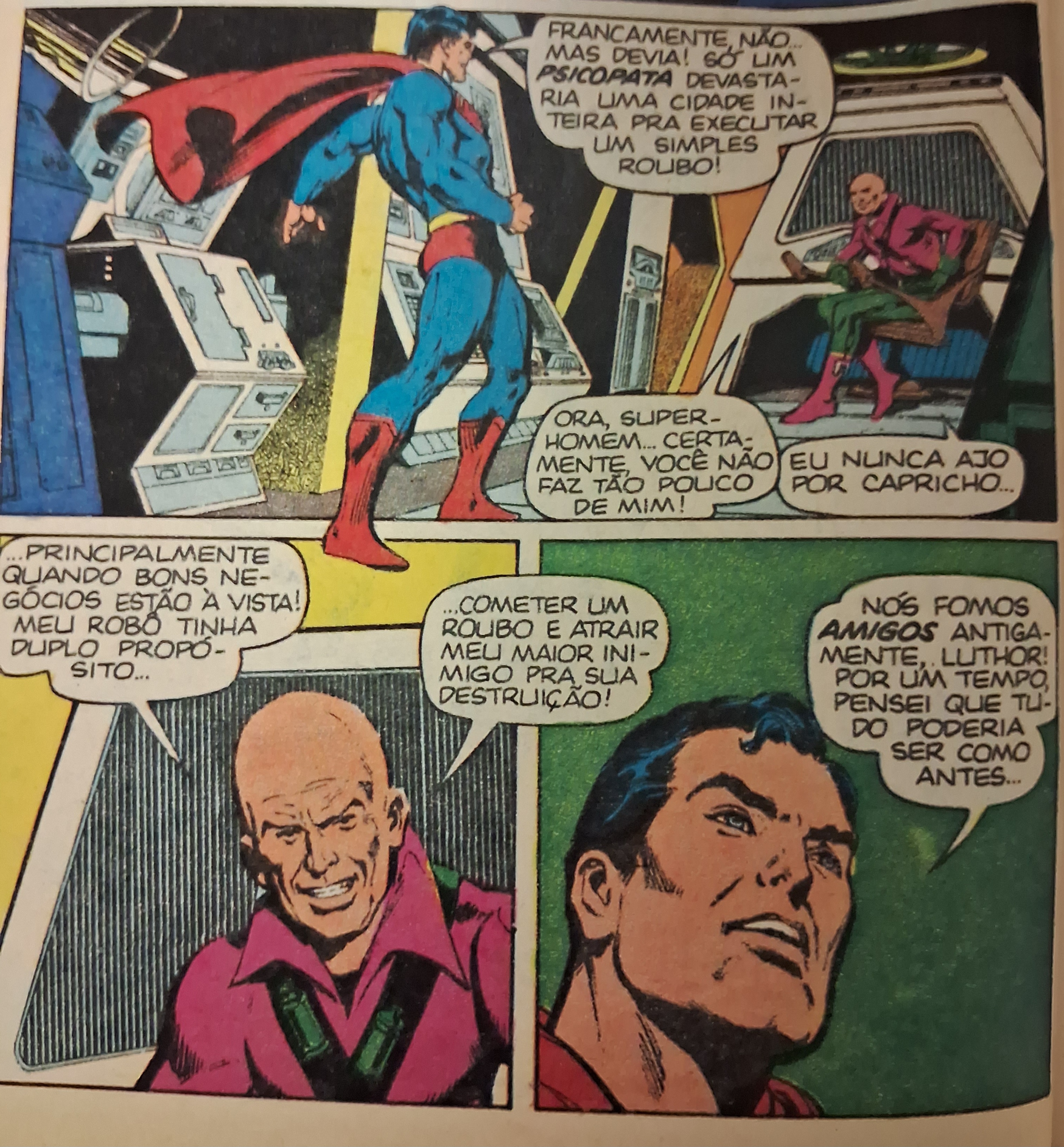 Me surpreendi ao ver que este Luthor pré-Crise já dialogava com uma infância em Smallville, onde teria sido amigo de Clark. Cânone gerado nas histórias do Superboy, talvez?