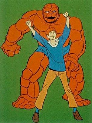 Com certeza é estranho quase ao nível de inacreditável imaginar que uma revista poderia ser ancorada por historias do Coisa e convidados. Mas, de fato, se o Aranha tinha a Marvel Team-up para seus encontros, alguns célebres aliás, como os da fase de Claremont & Byrne e o épico episódio final da “segunda” Saga de Thanos, nosso camarada Ben Grimm também tinha uma revista para interagir com seus amigos – a Marvel Two-in-One, que teve 100 edições entre 1974 e 1983. (Obrigado Guia dos Quadrinhos!) Enfim, neste final dos anos 70 o sobrinho mais charmoso da Tia Petúnia, o alaranjado Coisa, era sim muito popular – a ponto de ter o seu próprio desenho Hanna Barbera na TV.